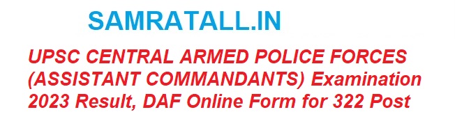 UPSC केंद्रीय सशस्त्र पुलिस बल (सहायक कमांडेंट) परीक्षा 2023 का परिणाम, 322 पदों के लिए DAF ऑनलाइन फॉर्म