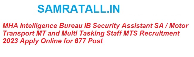 MHA Intelligence Bureau IB Security Assistant SA / Motor Transport MT and Multi Tasking Staff MTS Recruitment 2023 Apply Online for 677 Post in Hindi